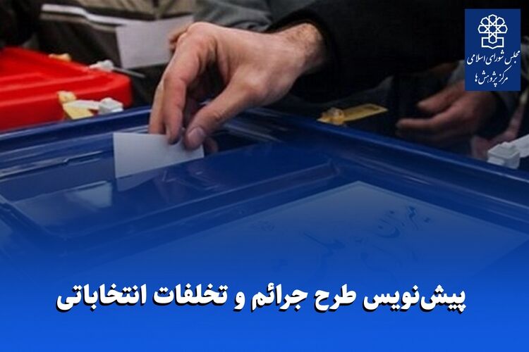 تهران-ایرنا- پیش نویس طرح جرائم و تخلفات انتخاباتی با پشتوانه ۸۵۰ نفر ساعت جلسه کارشناسی توسط دفتر مطالعات حقوقی مرکز پژوهش های مجلس تهیه و به مجلس ارسال شد.